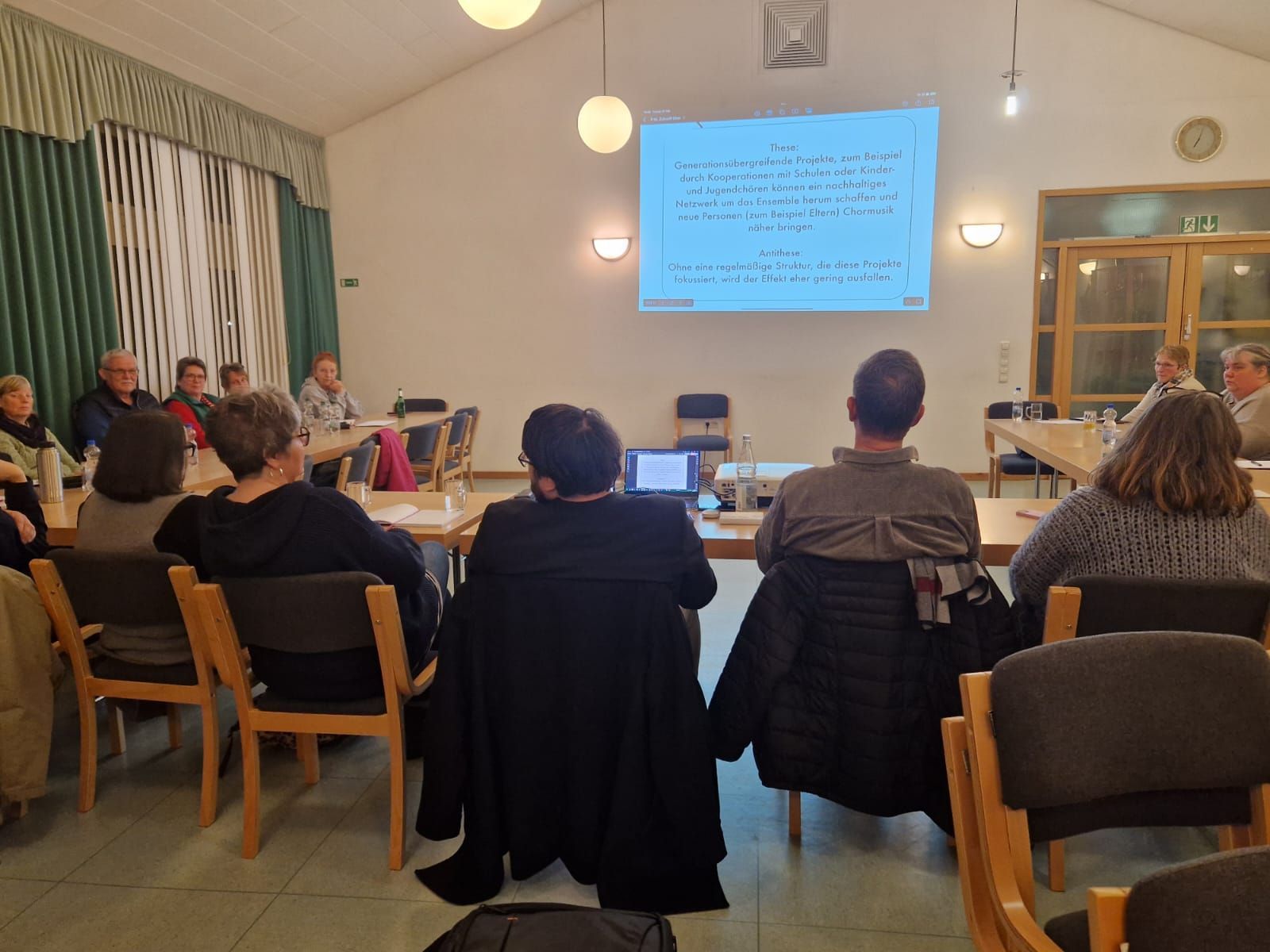 Insgesamt 16 Zeitstunden wurden die Teilnehmer in den Fächern Dirigieren, Musiktheorie, Gehörbildung, Rhythmik, Grundlagen der chorischen Stimmbildung, allgemeine Grundlagen des Chorleiterhandwerks unterrichtet. Bestanden haben erfreulicherweise alle!